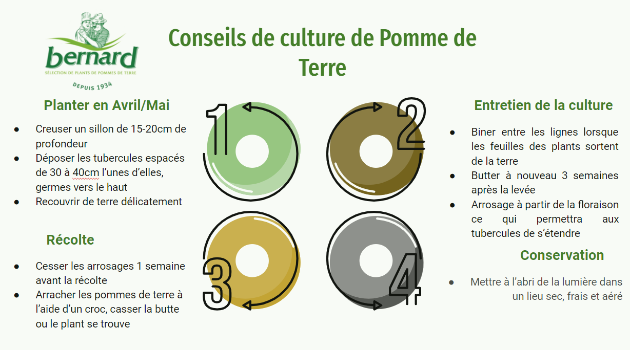 La société Bernard est spécialisée dans la production de semences de pommes de terre pour les jardiniers, les maraichers et les agriculteurs. Elle est un